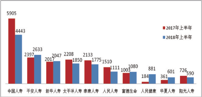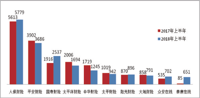 人身保险公司合同纠纷投诉量居前10位分别为:中国人寿4443件;平安人寿2633件;新华人寿2047件;太平洋人寿1850件;泰康人寿1775件;人民人寿1111件;富德生命1080件;人民健康881件;华夏人寿601件;阳光人寿590件。人身保险公司合同纠纷投诉量增长较快的有:人民健康增加697件,同比增长378.80%;华夏人寿增加240件,同比增长66.48%;天安人寿增加190件,同比增长112.43%。
