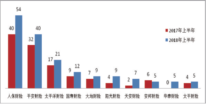 财产保险公司涉嫌违法违规投诉量居前10位分别为:人保财险54件;平安财险40件;太平洋财险21件;国寿财险12件;大地财险9件;阳光财险9件;天安财险7件;安邦财险5件;华泰财险5件;太平财险5件。财产保险公司涉嫌违法违规投诉量增长较快的有:人保财险增加14件,同比增长35.00%。