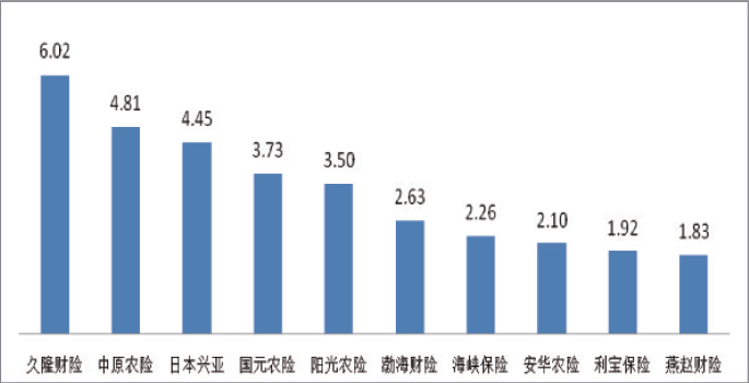 图六万张保单投诉量前10位的财产保险公司(单位:件/万张)