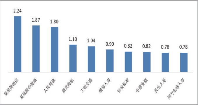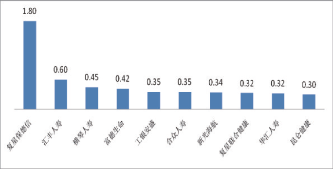 图八万张保单投诉量前10位的人身保险公司(单位:件/万张)